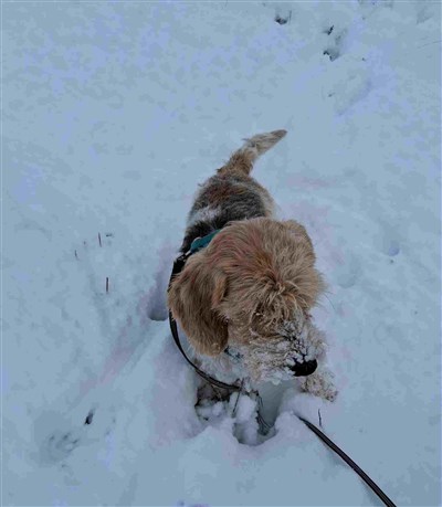 Kairo (joppe/tippi)etter 1 times los idag ,det var eier Karl Erik som var ute alene med sin unge ,flinke hund.