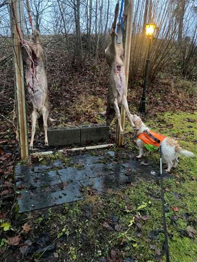 Tippi har vært på 'gjestejakt ' i Veldre idag og der ble det 2 rådyrfall.